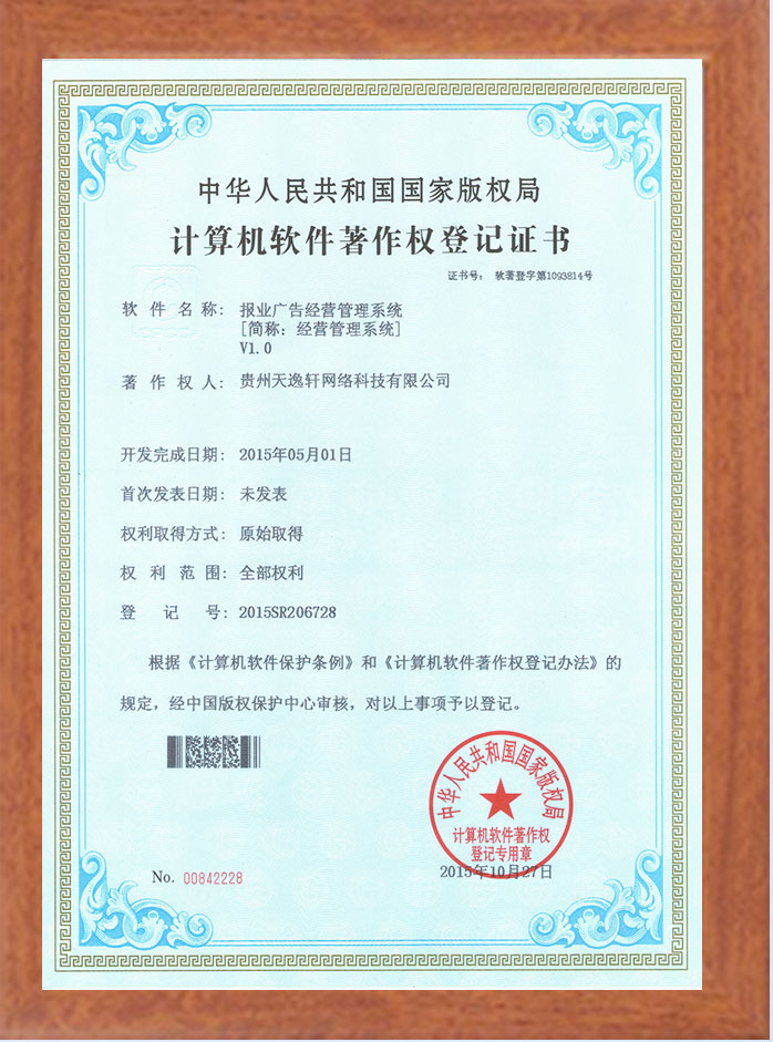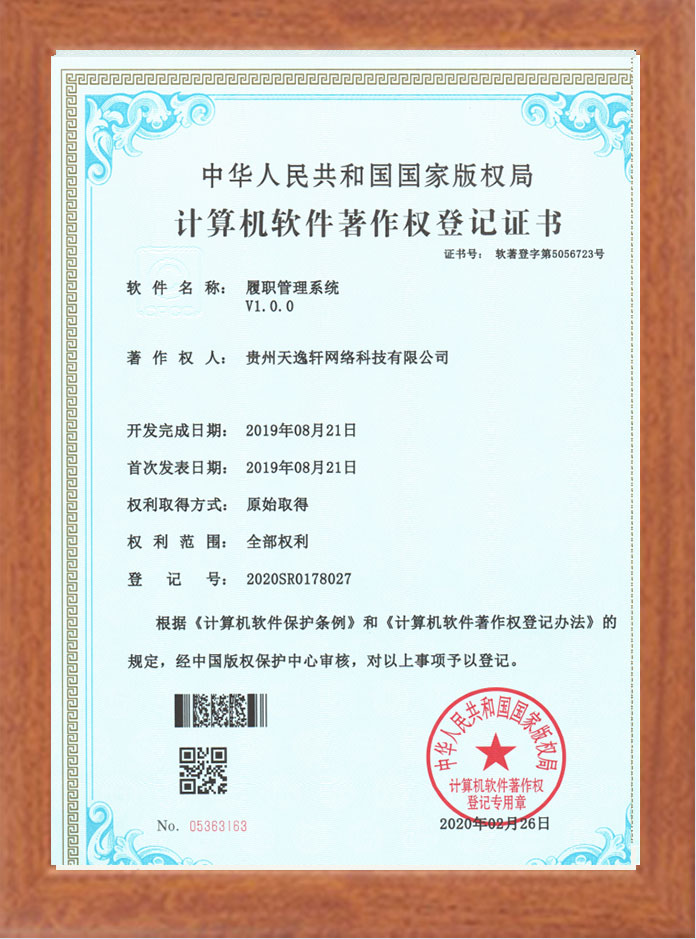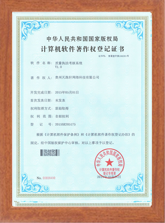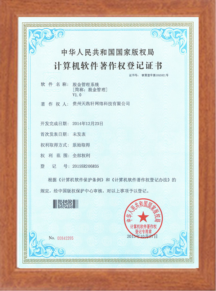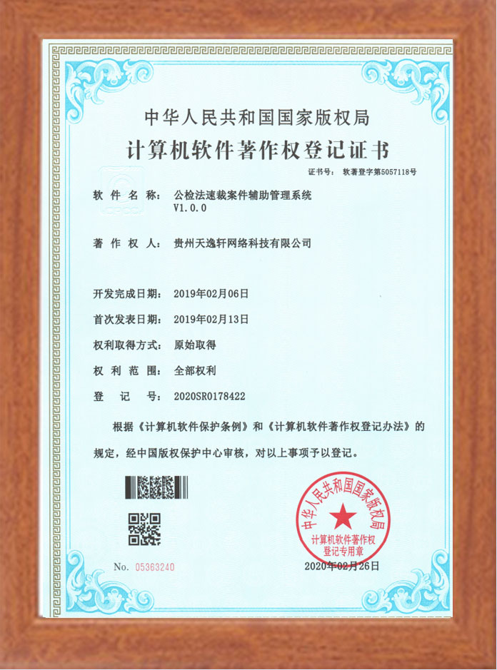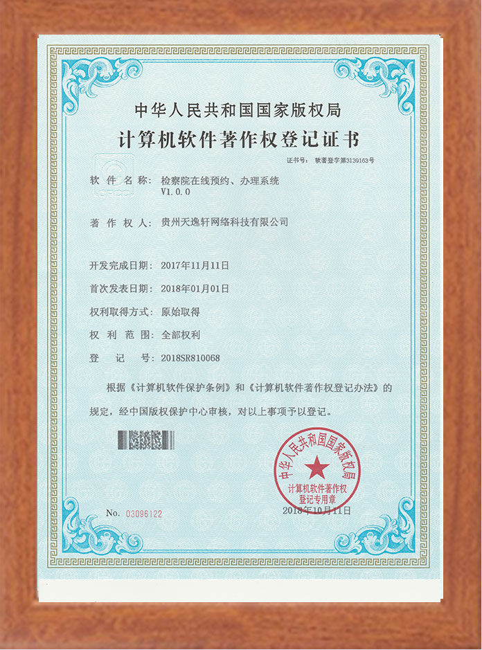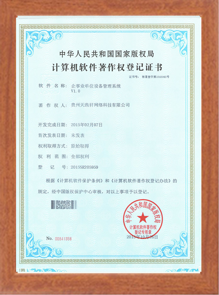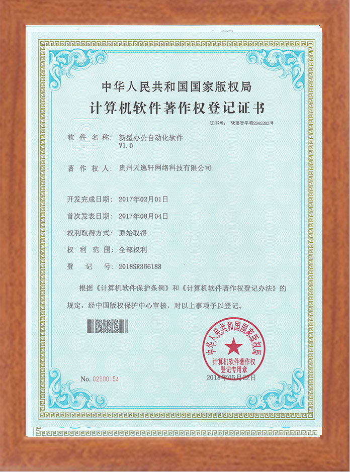 《計(jì)算(suàn)機(jī)Ω±δ軟件(jiàn)著作(zuò)權》是(shì)企φ$業(yè)科(kē)技(jì)研發工(gōng₹σ )作(zuò)中的(de)重要(yào)指标,反映了(le)企業(yè)在™"自(zì)主知(zhī)識産權成果 方面的(±↔♥ de)研發能(néng)力和(hé)超強的(de)持∏↓續創新能(néng)力,是(shì)天逸軒技(jì)術(shù)實力的(d≈¶βe)強有(yǒu)力佐證。